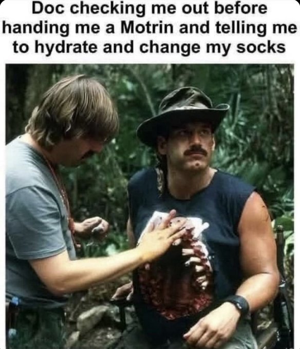 5. The Army teaches you to cook (out of necessity) and also to sew…they only make uniforms in two sizes, too big and too small. My sympathies on the leg. Had me a foot injury last week, too. Slipped on the carpet in my living room and twisted my foot pretty bad. I thought I broke something in there, but it was probably just a bad sprain. Used my Army training for that…”drink water, take Motrin, walk it off”. A week later it’s still tender, but I’m getting a round.