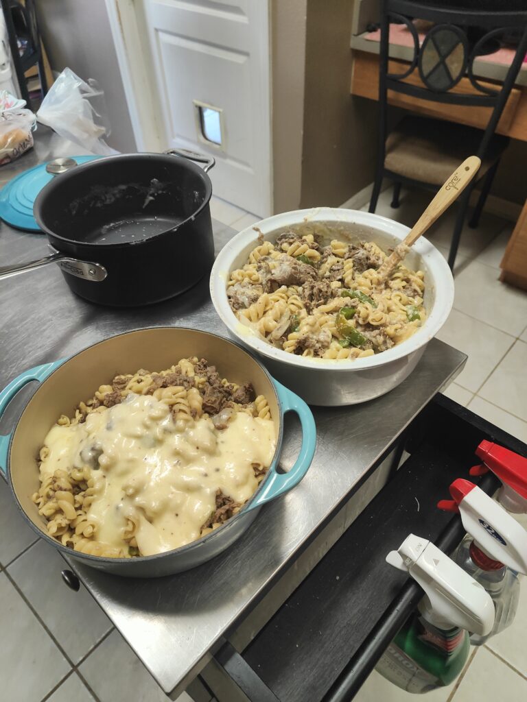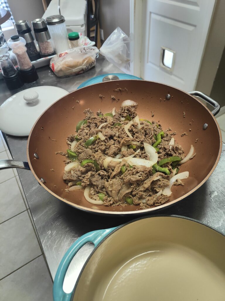 My recipe about as you see makes a LOT of the bake. You could cut it in half if you only want one meal for one, with 2-3 days worth of leftovers… either way, the cost of this meal would be about $20 for the shaved ribeye now, and about $5-10 for the rest of the ‘stuff’. However, the meat I bought and pulled from the deep freeze, so it was from September of 2024… and I only paid $7.50 per 12oz. The one I used was from Publix:
