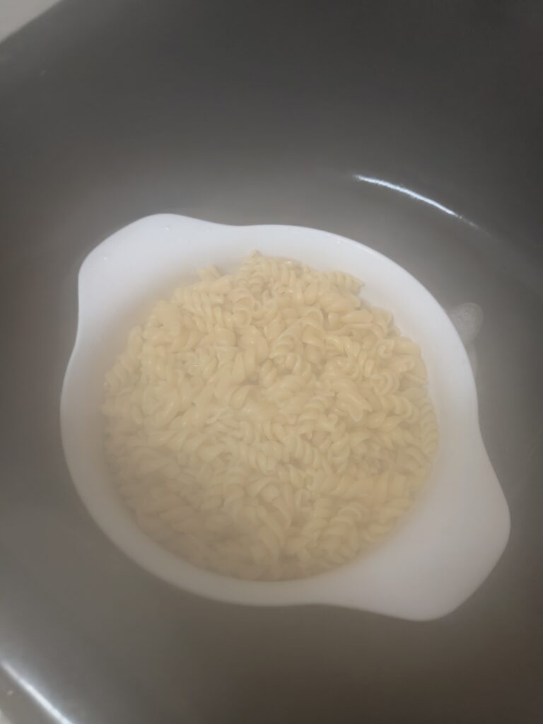 As you can see, the veggies are blanched, but not overcooked, and the meat is fully cooked. Mind you if one were so inclined that on it’s own, that dish? stuffed in a bun would be good to go. However, for this exercise? Once the pasta is done, pull it too: