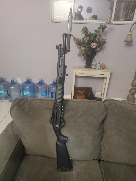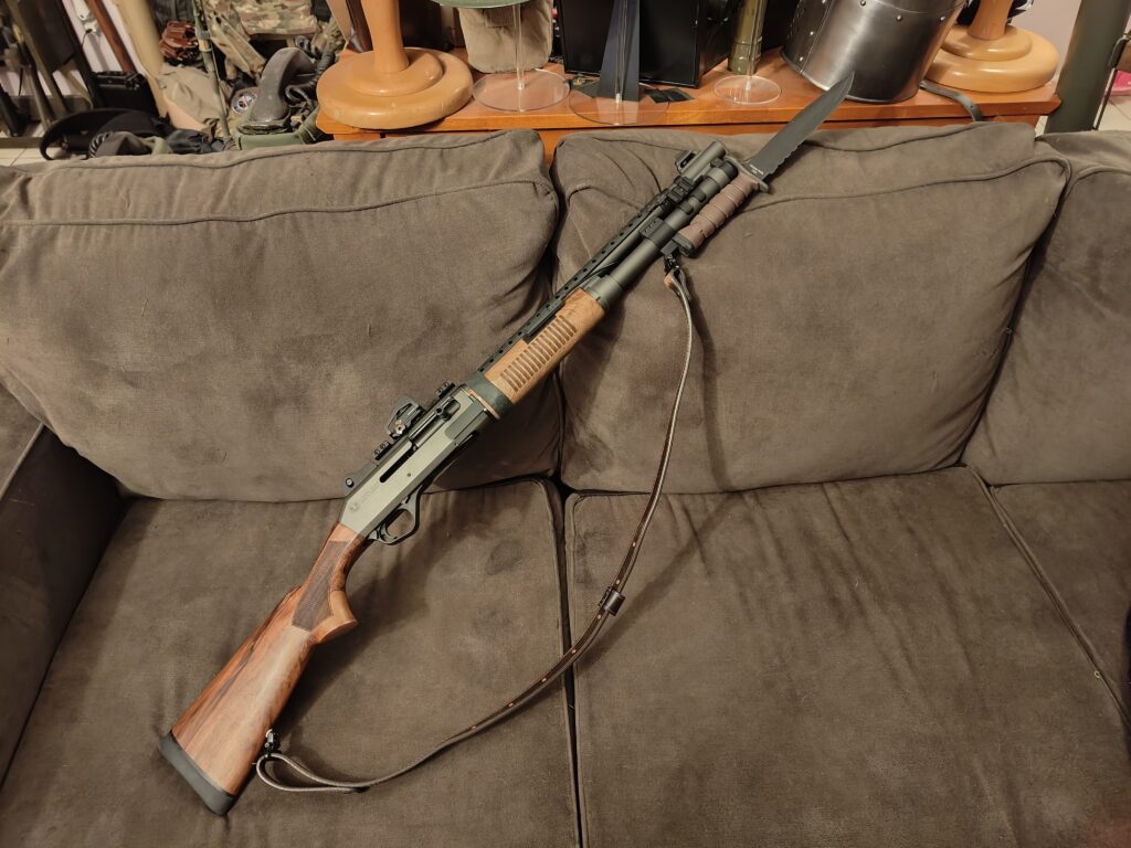 I mean -I’m- never changing this particular setup, so why the hell not? And it’s been run hard. Nothing but Double Aught and Slugs of various flavor, and ZERO malfunctions. In the pic I have it running with my US Army Issue M-9 Stabby.