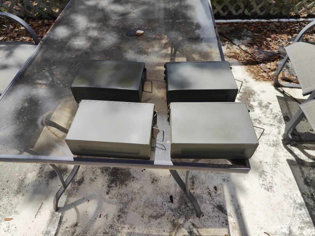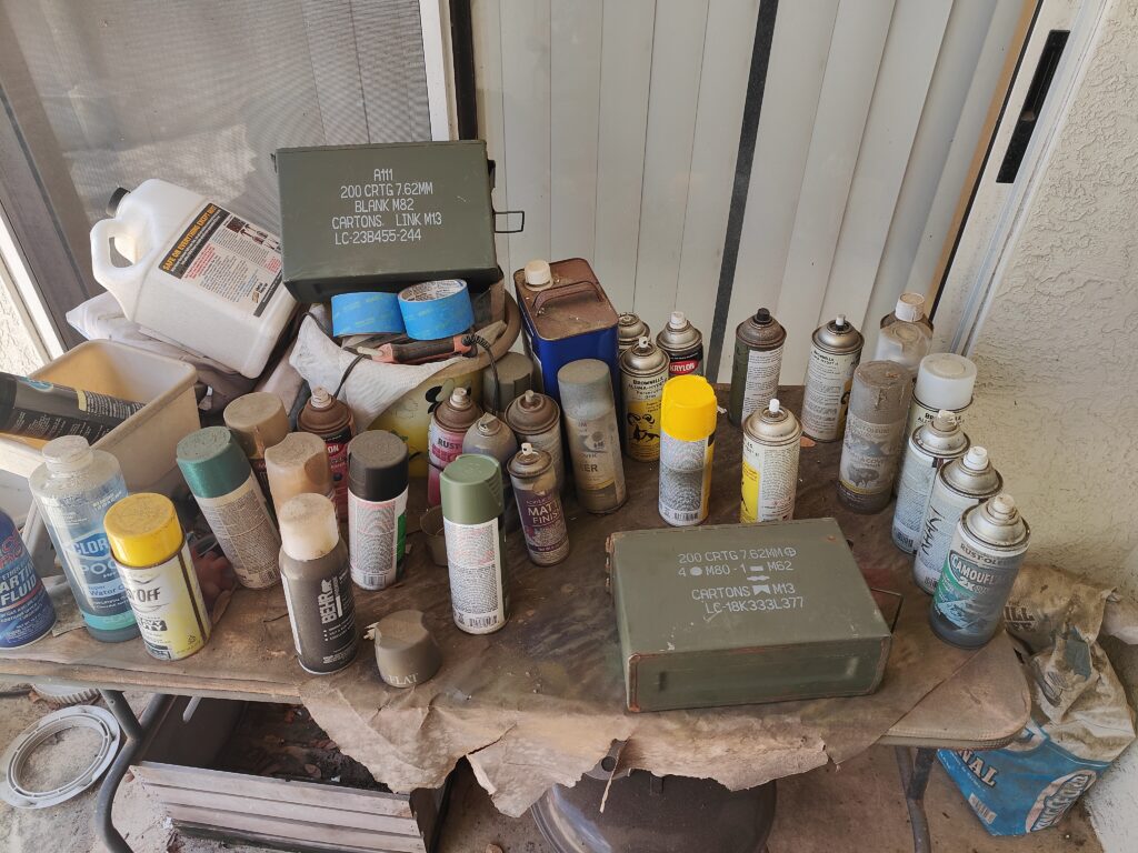 The cans for the most part are rust free, which is a plus, and I hit them with the proper OD Green (literal US DotMil issue) so I didn’t have to pain the entire can: