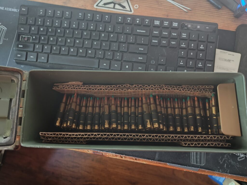Now since it IS a can designed for 7.62mm, I filled in the interior and bottom with some cardboard. Times like this make me thankful for the Zon and the copious amounts of cardboard they ship their ‘stuff’ in:
