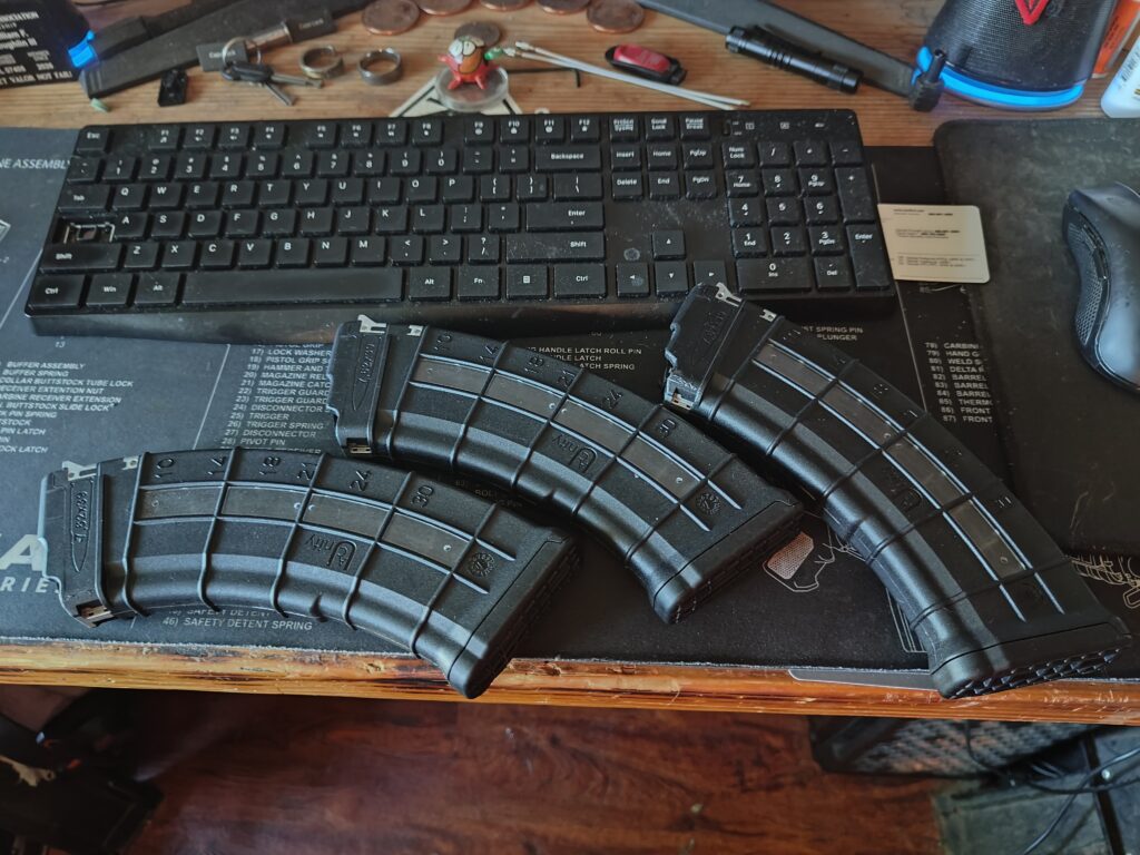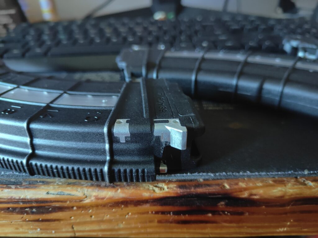 I think 98% of ALL ARs built now have the M-16 BCG. And the same with buffer tubes and whatnot… so I switch out the tube. Now since I’m his so-to guy, he’d told me he’d picked up some extremely cheap mags for his AK. Problem was, they weren’t fitting at all. I told him to bring them along…