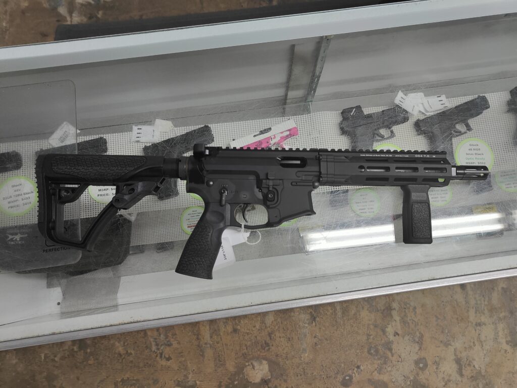 It takes CZ Scorpion mags, as well as a bunch of other aftermarket mags. Officially it’s the DD-PCC-SBR, which stands for the Daniel Defense Pistol Caliber Carbine, Short Barreled Rifle, which is a fucking mouthful. It retails for about $1800 and change. That being said, on my handling and inspecting it? Let me ask: can anyone tell me what -I- saw that made me go “Oh HELLS No!”?