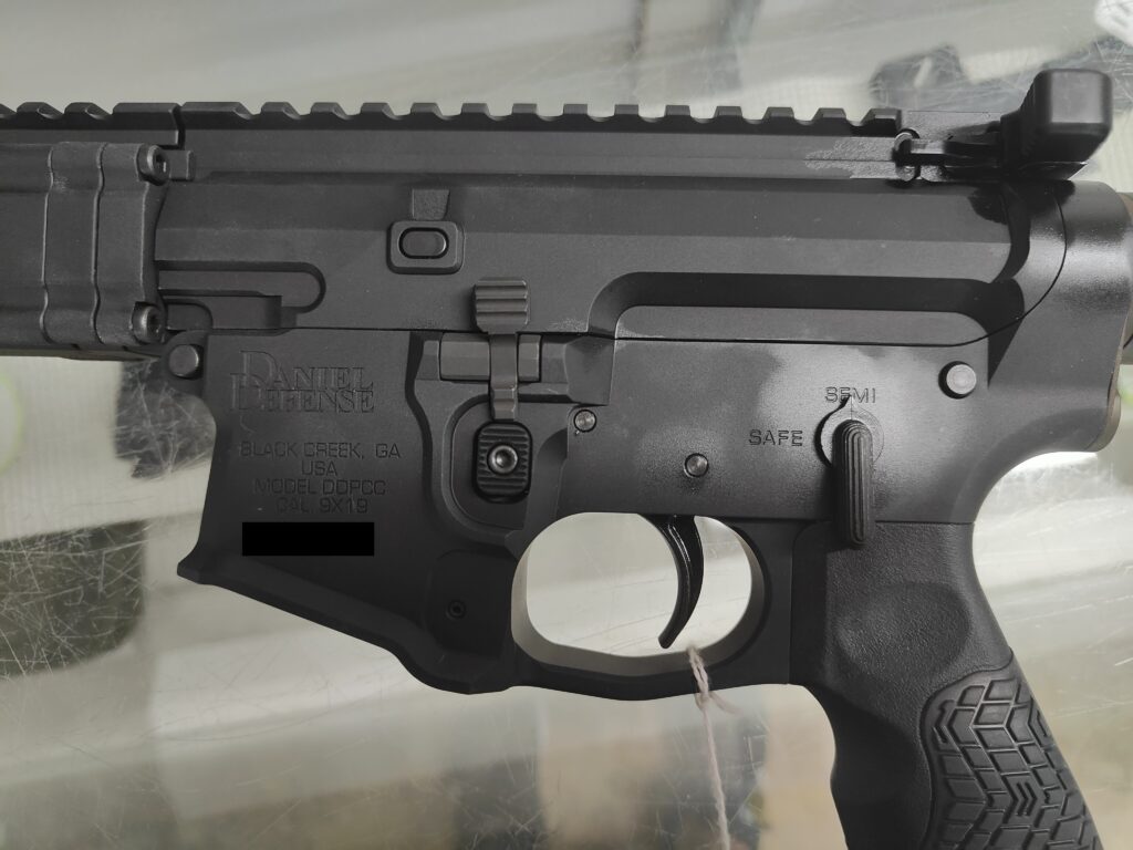 Today at the Gun Shoppe, Sapper started showing me some of the new toys that came in. One of which is a Daniel Defense Short Barreled 9mm Carbine. At first glance, it’s kind of cool looking: