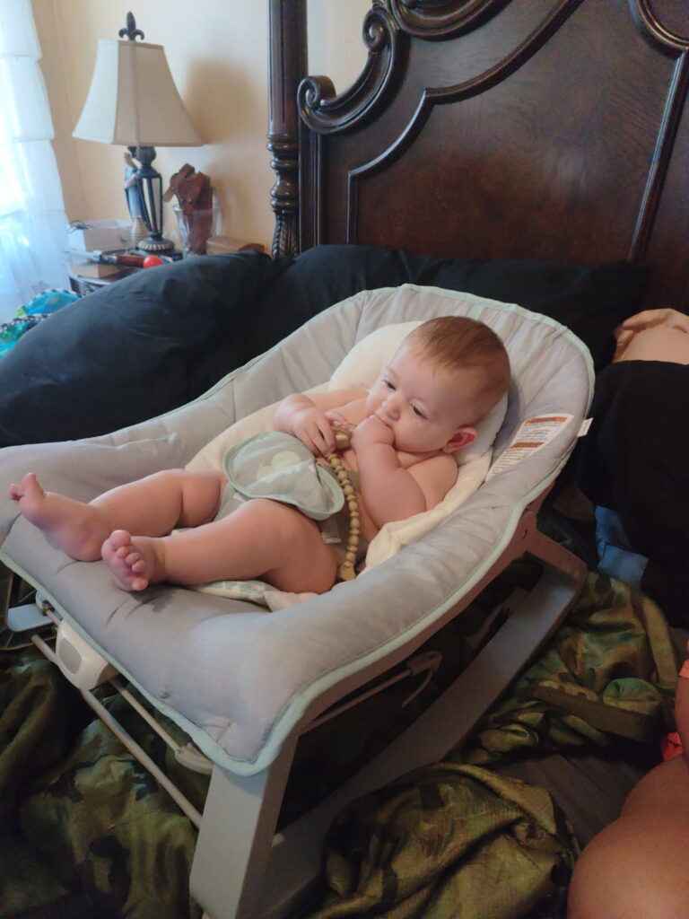 That’s the new bouncy/vibrating seat he’s in…