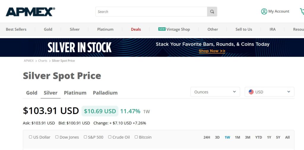 The problem? Look at the ask for ONE AMerican Eagle One oz Silver Dollar $101.02 That’s the best price.. as in how much you pay in bulk per coin, when in reality, if you ONLY want one coin? ONE COIN is going to run you $108.67: