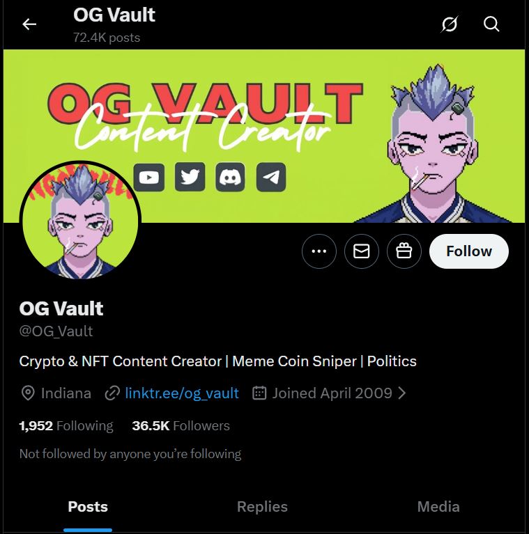 The Link is in the Upper Left but it’s also on his profile but here… let me assist: https://linktr.ee/og_vault