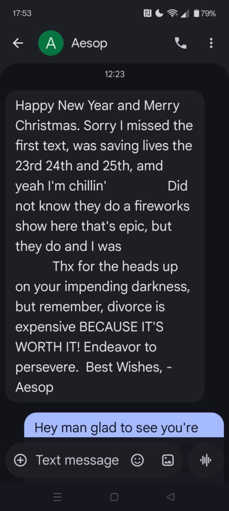 Greetings and Salutations! Well… been a busy couple of days. Heard back from my dude who won the raffle that he’ll be home from his Christmas Vay-Kay tomorrow and then we could discuss ‘stuff’ and logistics.