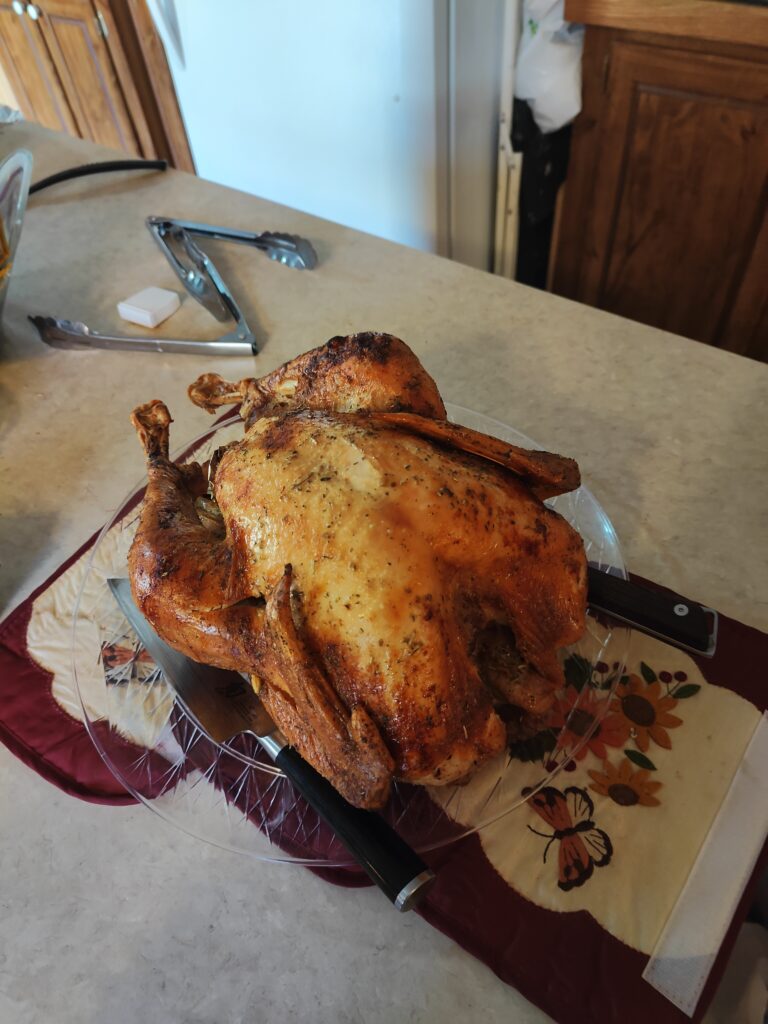 I was able to start with that, and at 0700. It stewed while I got the bird to room temp, and then around 10:00 once I prepped the Turkey, I jammed IT into the oven, which it had about a 4+ hour ‘ride in the roaster’ so to speak.