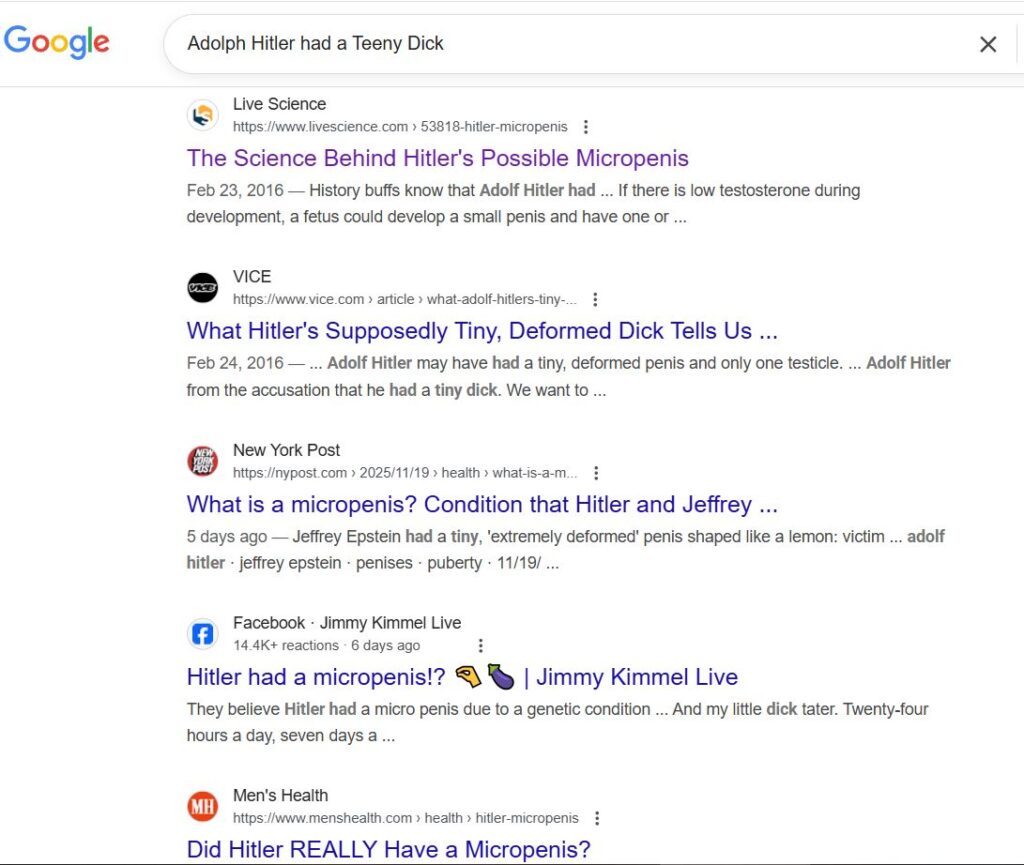 It’s pretty obvious that a ‘certain Middle Eastern Tribe is desperate to come up with –something– to TRY and distract from them raping men and killing children, so the “Hitler Had a Micro-Peen” was the first attempt, and of course, it failed spectacularly… I mean I have to give them an “A” for effort in that they must have paid everyone to get this story out…