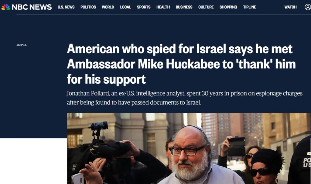 In fact ANOTHER recent story, A guy who SHOULD HAVE BEEDN put against a wall for his bullshit? The convicted spy and traitor jew Jonathan J. Pollard met with the US Ambassador Mike Huckabee ostensibly to thank him for all the support when he was in jail for genuine treason he did while working for the FBI