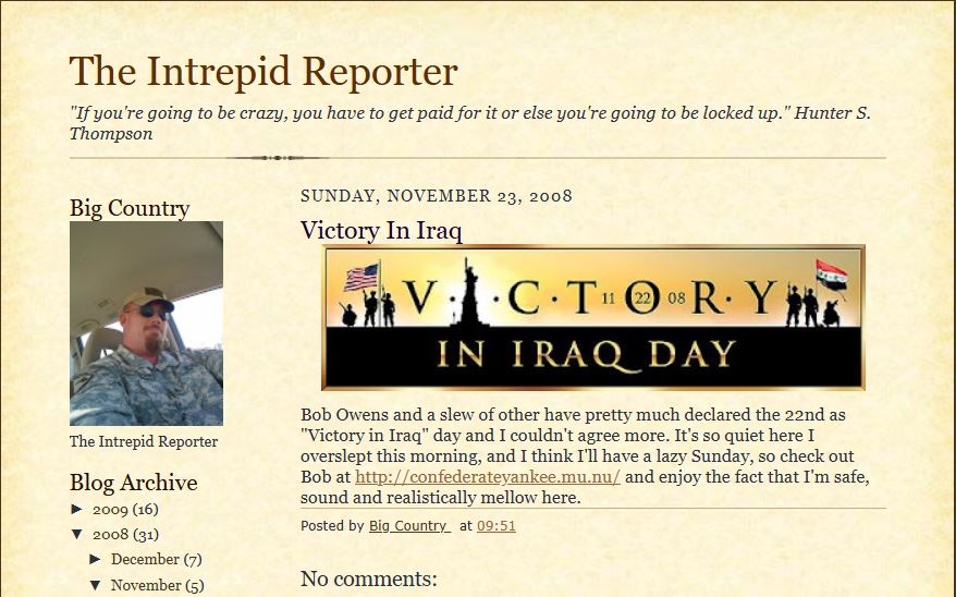 I knew Bob as his “Kuwaiti Connection” during the whole Franklin Foer Debacle… The Baghdad Diarist Bullshit which you can read about HERE. They don’t credit Bob at all in that article, but the reality is HE was the one who blew the story WIDE THE FUCK OPEN and I was his “man on the ground” in Kuwait. I was a regular reader of his blog, and when the story about that miserable “still-needs-his-teeth-kicked-in” faggot Scott “Wannabe” Beauchamp’s story came out, I emailed Bob, and thus our frenship got established: